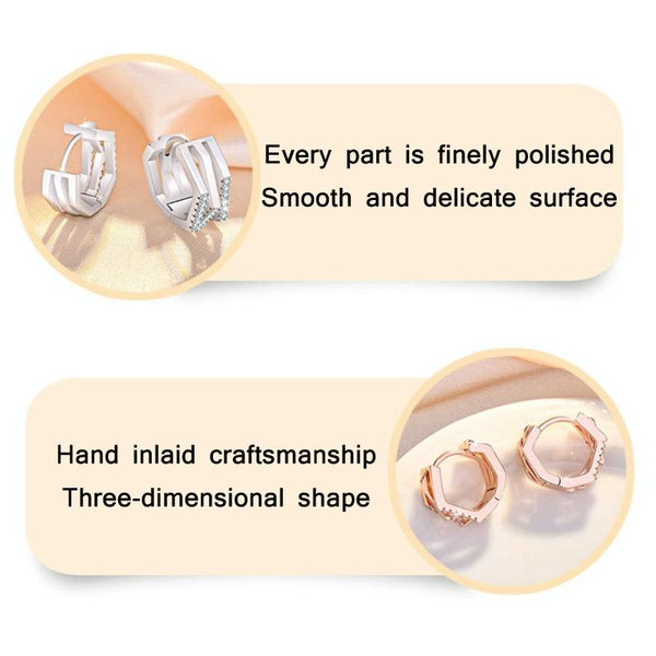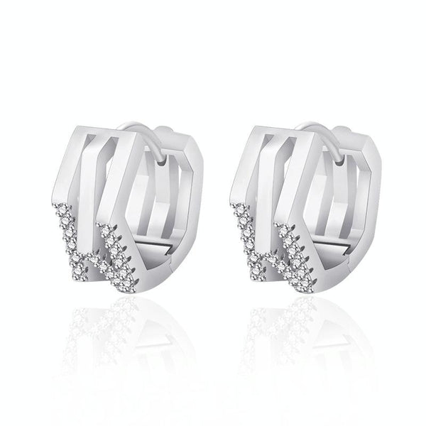 K22 Women Geometric Cutout Micro-Set Diamond Ear Buckles(Platinum)