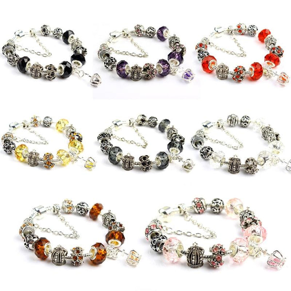 Ladies Crown Colorful Crystal Beaded Bracelet Handmade Glass Bead Bracelet Length: 18cm(DZ29)