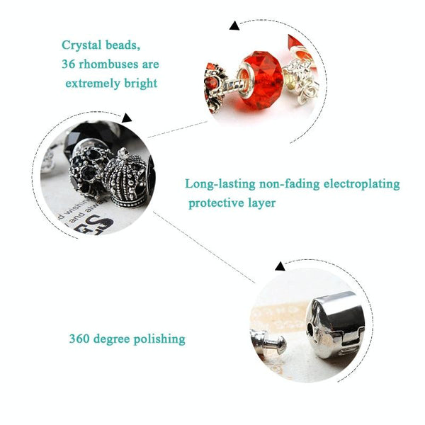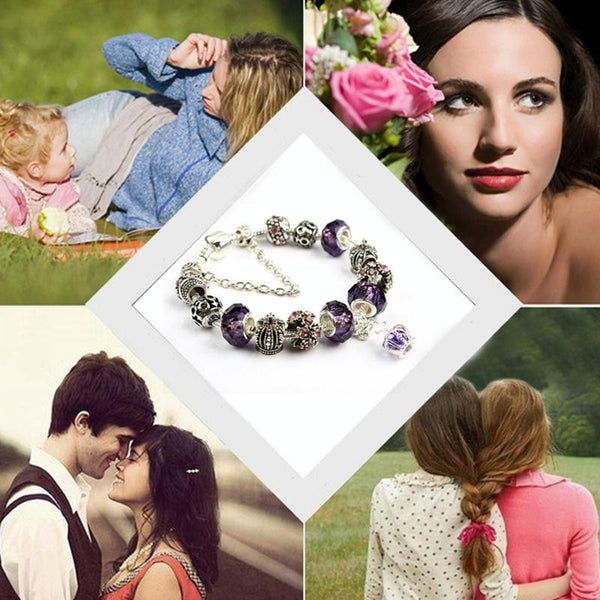 Ladies Crown Colorful Crystal Beaded Bracelet Handmade Glass Bead Bracelet Length: 18cm(DZ35)