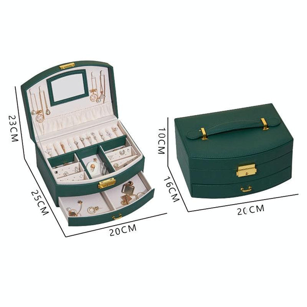 Large-capacity Double-layer Jewelry Storage Box Drawer Ring Earring Jewelry Storage Box(Dark Green)