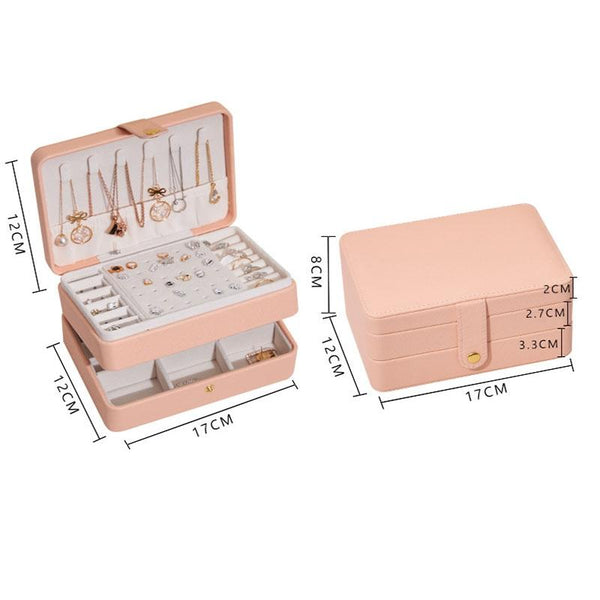 Large-capacity Three-layer PU Leather Waterproof Jewelry Storage Box Earring Necklace Storage Box(Peach Pink)