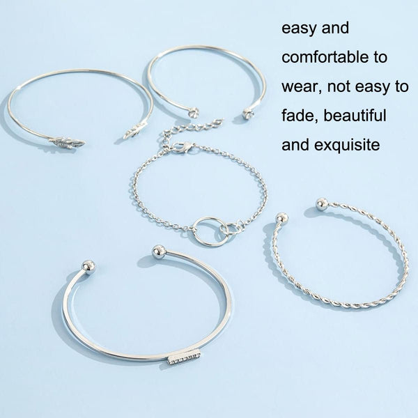 Leaf Diamond Bracelet Circle Lace Pattern Adjustable Bracelet(Silver)
