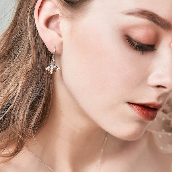 Little Bee Sterling Silver Earrings Inlaid Gemstone Female Earrings