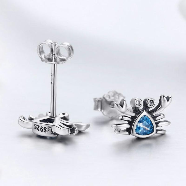 Little Crab S925 Sterling Silver Earrings with Gemstone Heart-shaped Earrings