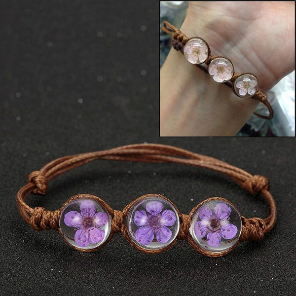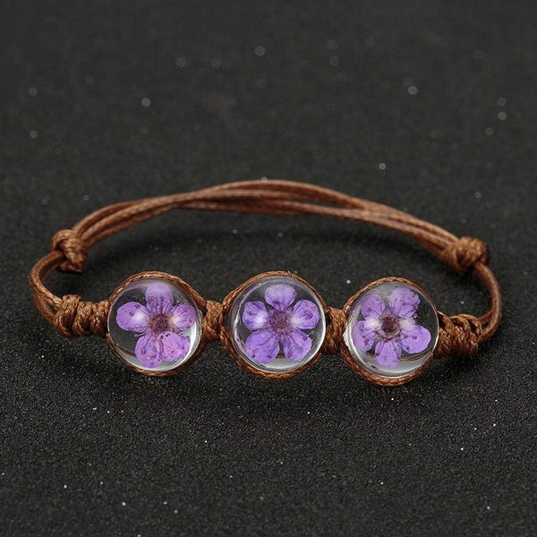 Lucky Handmade Woven Dried Flower Glass Beads Bracelets(Purple)