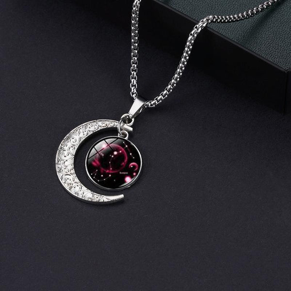 Luminous Zodiac Moon Titanium Steel Necklace Personalized Moon Pendant(Scorpio)
