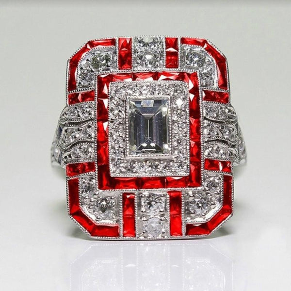 Luxury Square Women Crystal Zircon Engagement Ring, Ring Size:6(Red)