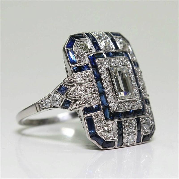 Luxury Square Women Crystal Zircon Engagement Ring, Ring Size:7(Blue)