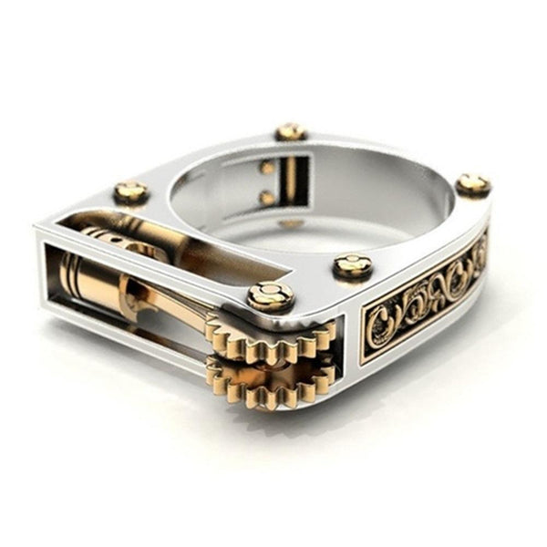 Mechanical Two-Tone Ring Gear Novelty Jewelry Ring, Size: 6