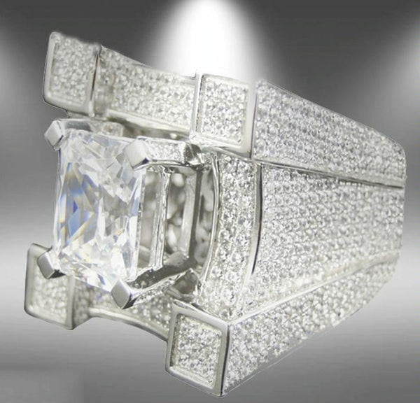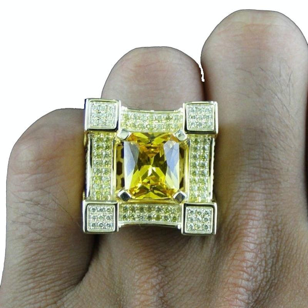 Men Luxurious Microencrusted Zircon Ring, Ring Size:12(Gold)