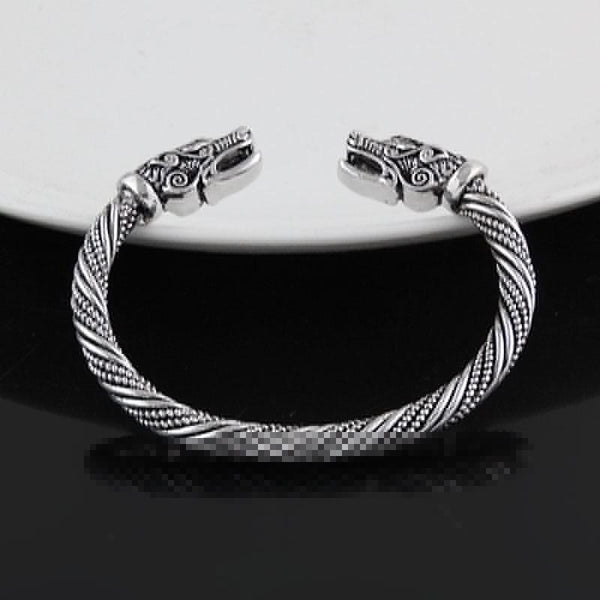 Men Wristband Cuff Dragon-Head Viking Bracelet Jewelry Fashion Accessories(Antique Gold Plated)