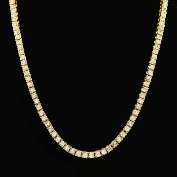 Mens Hip Hop Punk 1 Row Crystal Inlaid Alloy Necklace Chain, Size: 20 inch (Gold)