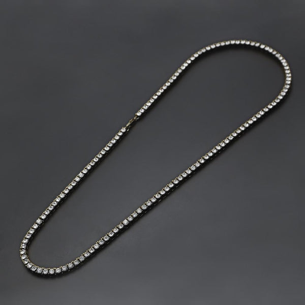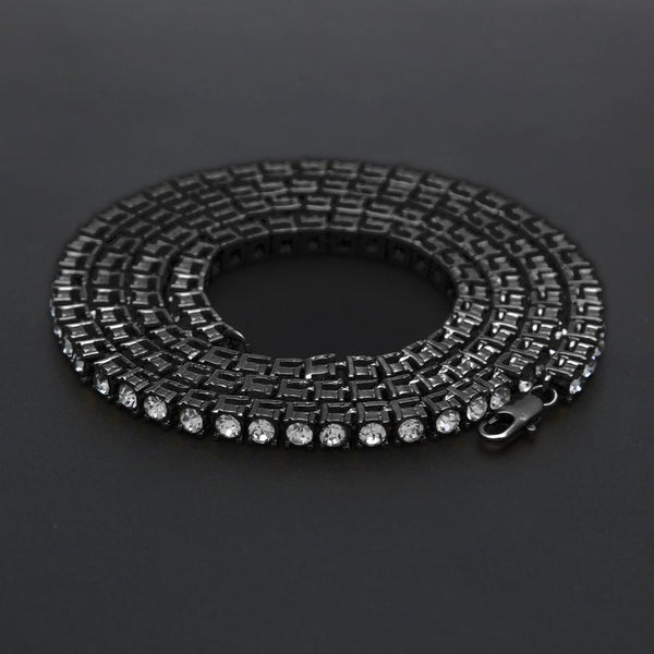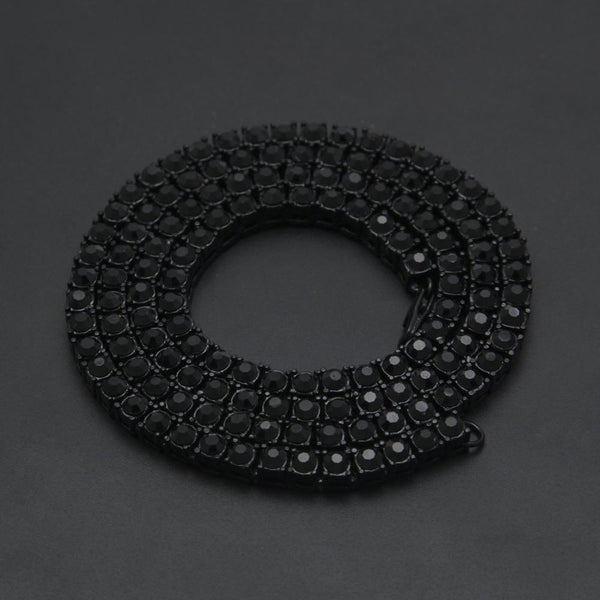 Mens Hip Hop Punk Single Row Crystal Inlaid Alloy Chain Necklace, Size: 24 inch (Black)