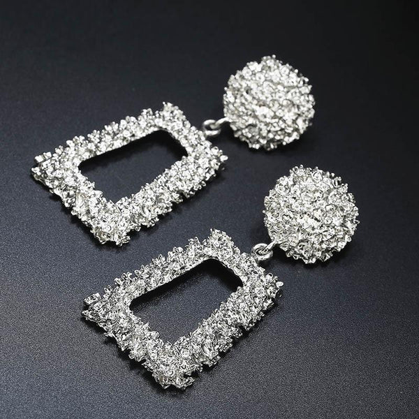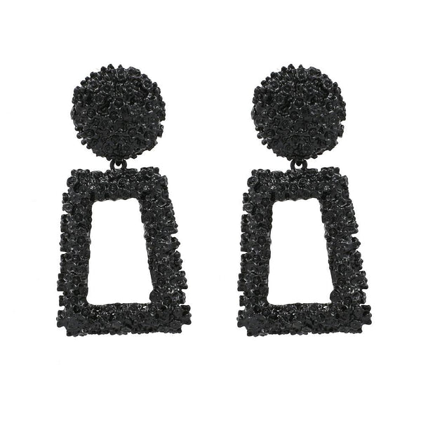 Metal Earrings Simple Geometric Embossed Floral Earrings Retro Fashion Personality Earrings(black)
