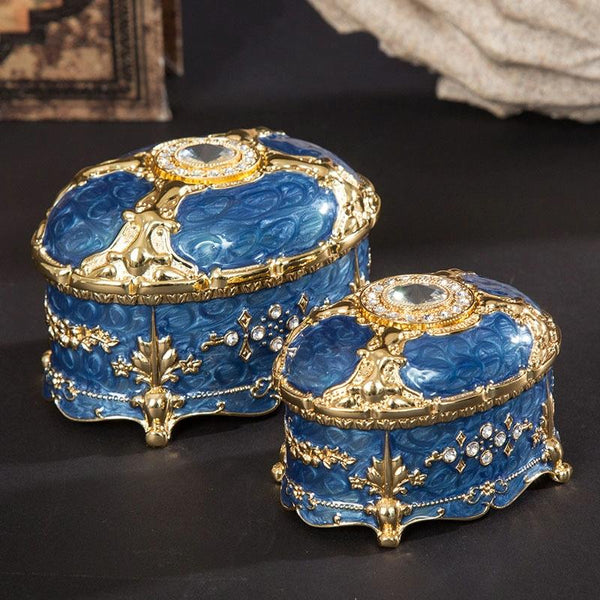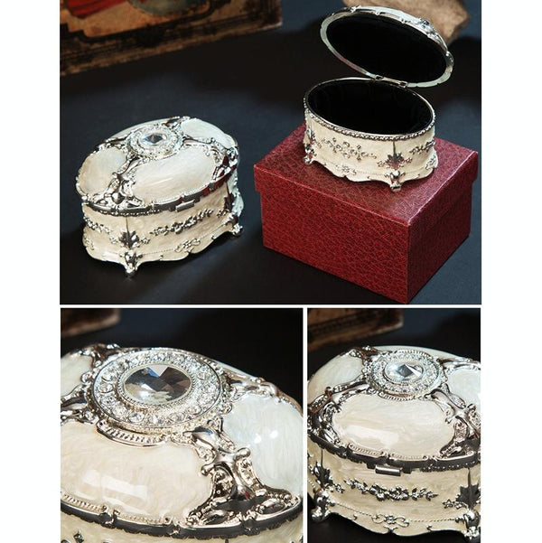 Metal Oval Diamond Jewelry Storage Box Birthday Wedding Gift, Size: 11x7.5x7cm(Gold White)