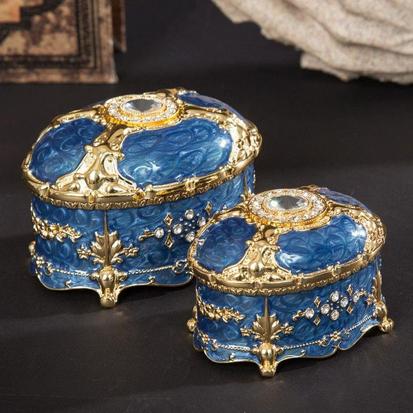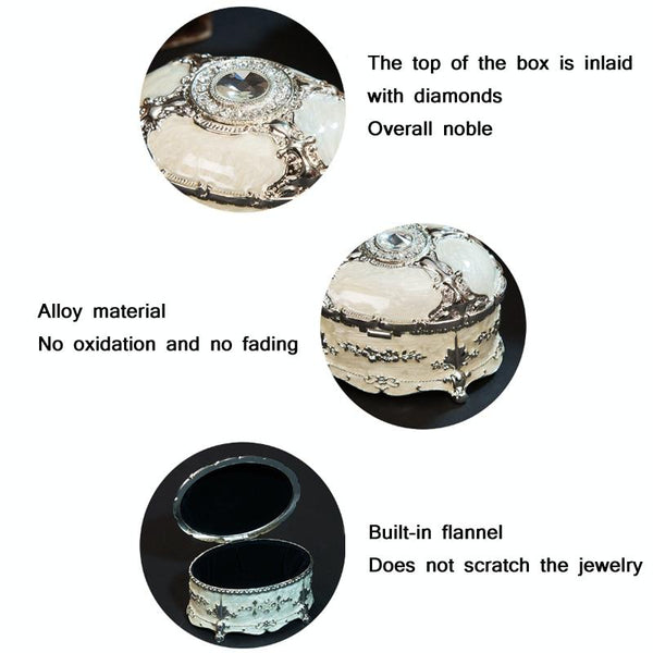 Metal Oval Diamond Jewelry Storage Box Birthday Wedding Gift, Size: 8.5x6x6cm(Gold White)