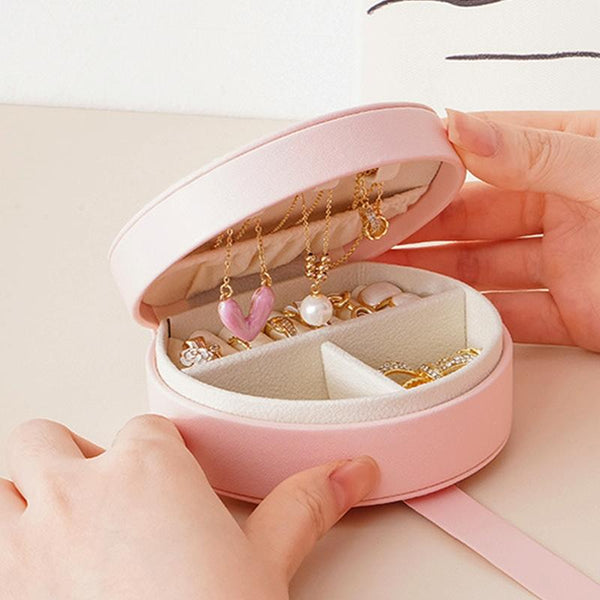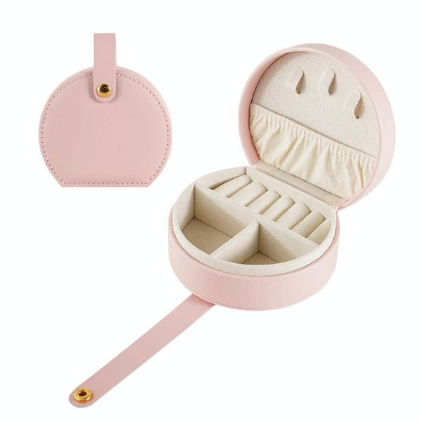 Mini Portable Leather Handheld Jewelry Bag Necklace Ring Earring Storage Box(Pink)