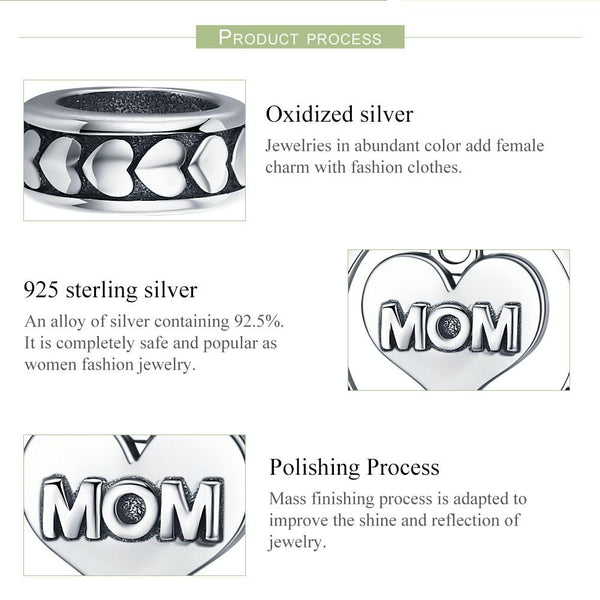Mothers Day Gift S925 Sterling Silver Tribute To Mothers Love Beads DIY Bracelet Accessories, Style:Bead
