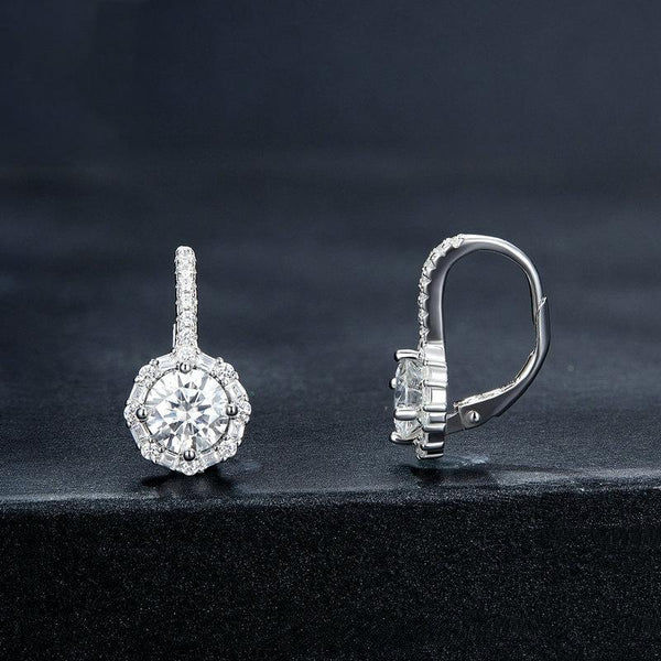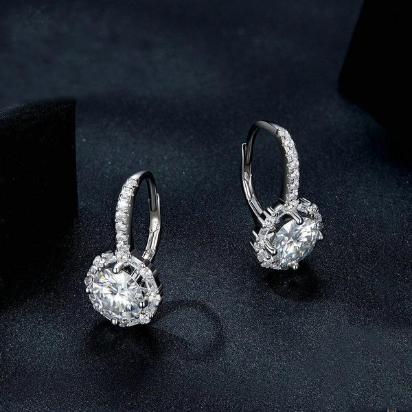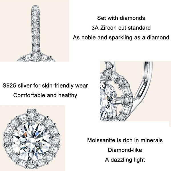 MSE002 S925 Sterling Silver Moissanite Zirconia Elegant Earrings White Gold Plated