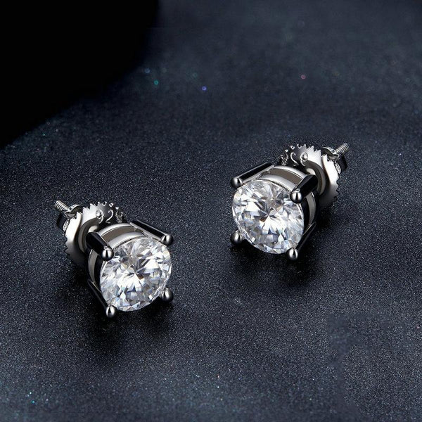 MSE003 S925 Sterling Silver Platinum-plated Four-claw Earrings, Size: L