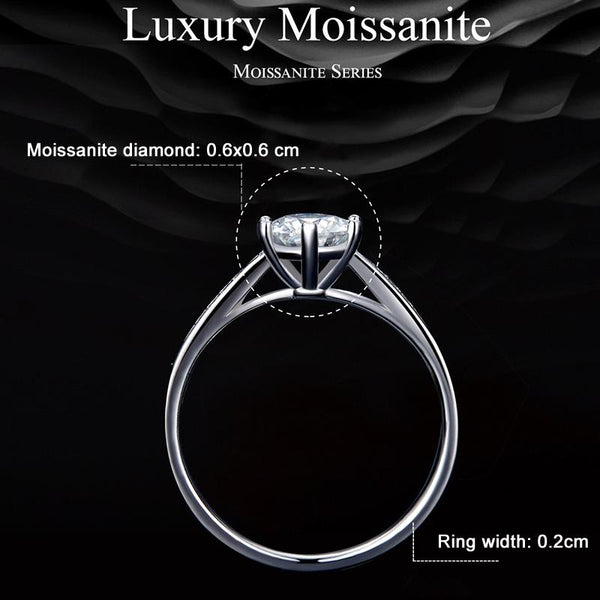 MSR004 Sterling Silver S925 Six Claw Moissanite Ring White Gold Plated Jewellery, Size: No.6