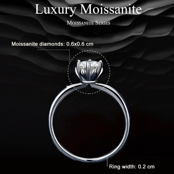 MSR006 Sterling Silver S925 Six Claw Moissanite Ring White Gold Plated Jewellery, Size: No.10