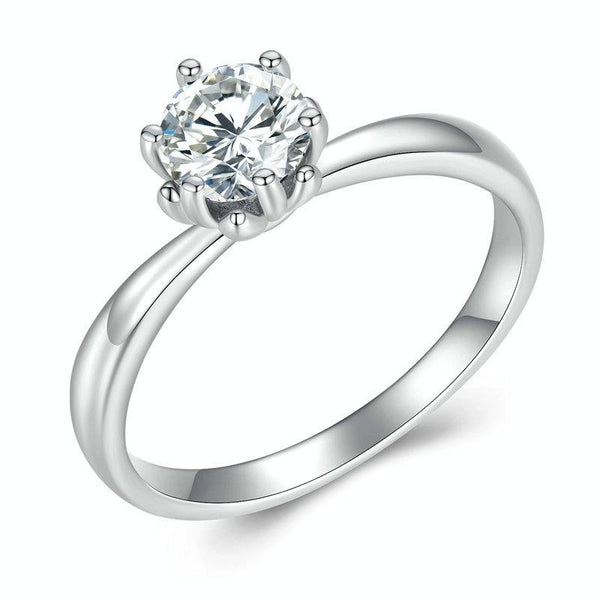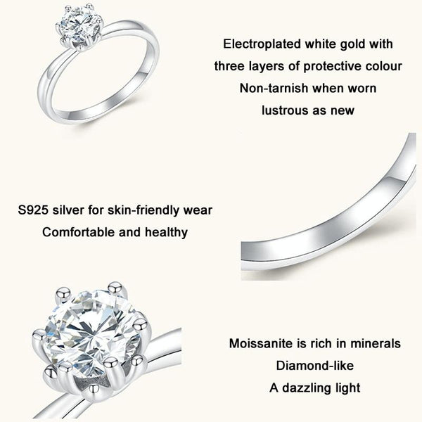 MSR006 Sterling Silver S925 Six Claw Moissanite Ring White Gold Plated Jewellery, Size: No.9