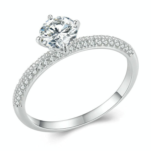 MSR008 Sterling Silver S925 Sparkling Moissanite Ring Zirconia White Gold Plated Jewellery(No.6)