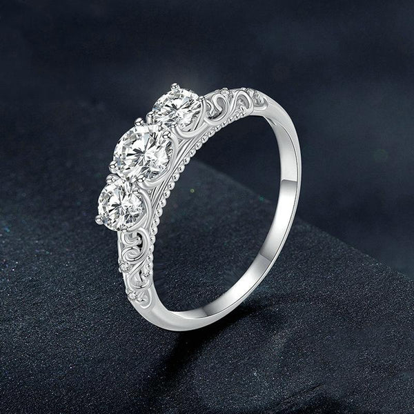 MSR009 Sterling Silver S925 Lace White Gold Plated Moissanite Ring(No.10)