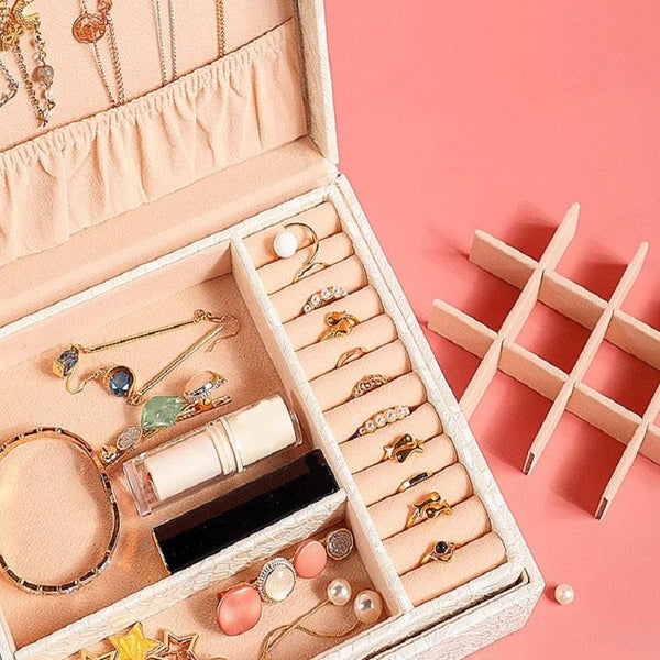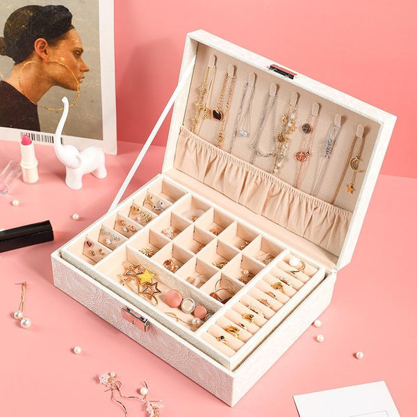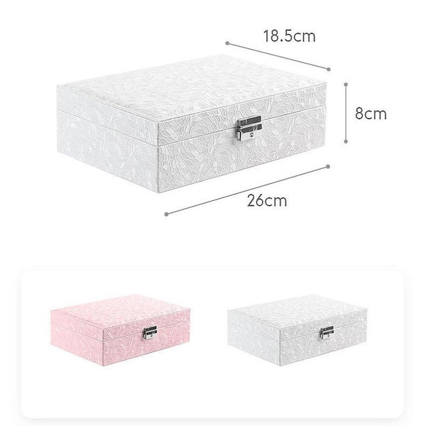 Multi-Layer Flip Cover With Lock Jewelry Box Solid Color Jewelry Desktop Storage Box(White)