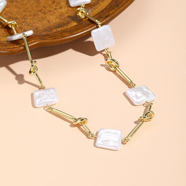 N2209-1 Twist Stick Square Pearl Ladies Temperament Necklace Collarbone Chain