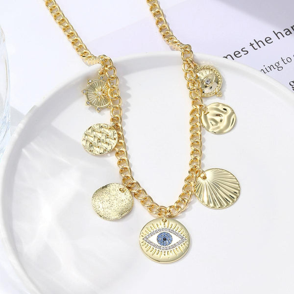 N2211-2 Eye Seven Pendant Female Necklace Simple Multi-Pendant Necklace