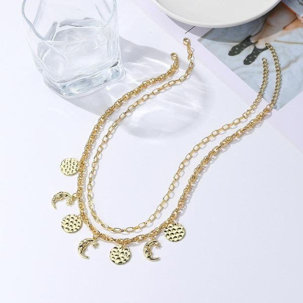 N2211-4 Double-layer Moon Female Necklace Simple Multi-Pendant Necklace