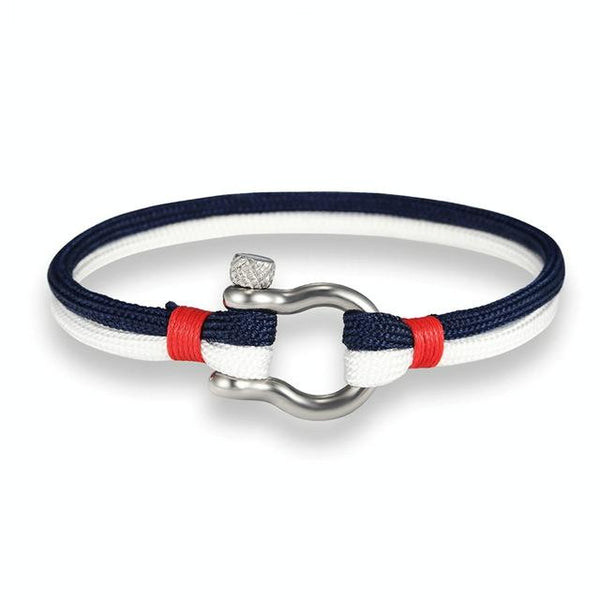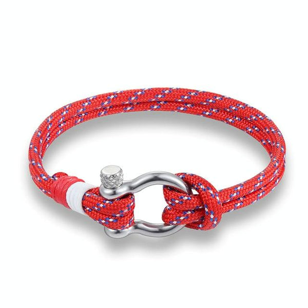 Navy Style Sport Camping Parachute Cord Survival Bracelet with Stainless Steel Shackle Buckle(Red)