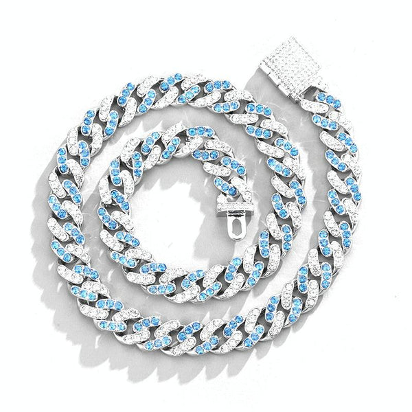 NL023 11mm Box Buckle Hip Hop Bracelet, Size: 20cm (White Blue)
