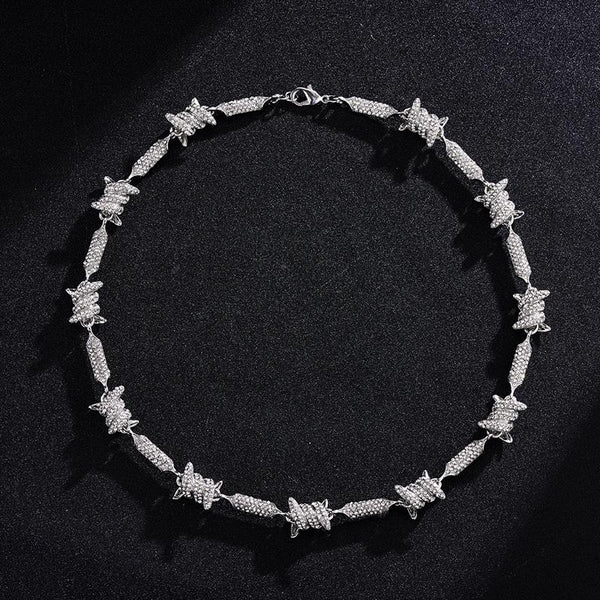 NL098 Diamond Three-Dimensional Wire Necklace, Size: 18 Inches (Silver)