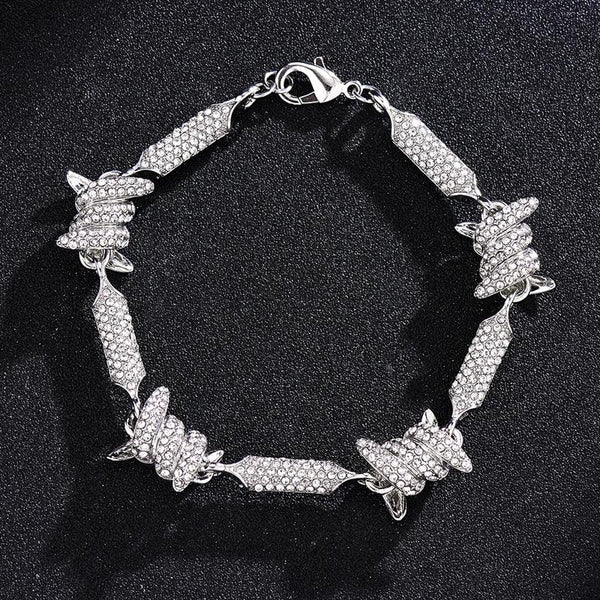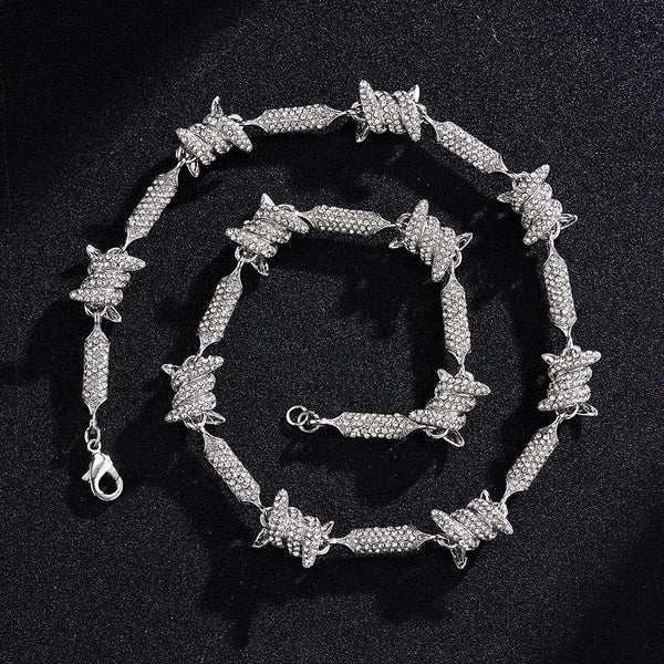 NL098 Diamond Three-Dimensional Wire Necklace, Size: 8 Inches (Silver)