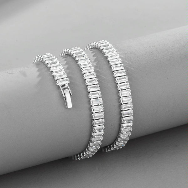 NL102 Encrusted Zirconium Cuban Bracelet, Size: 55cm (Silver)