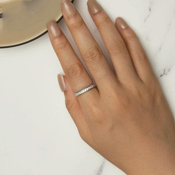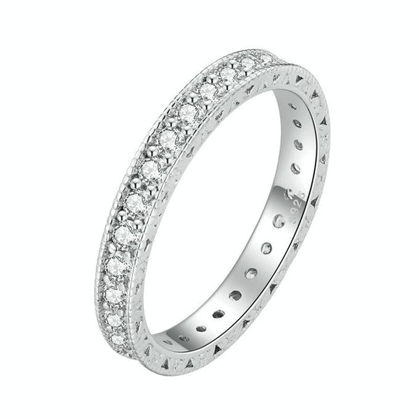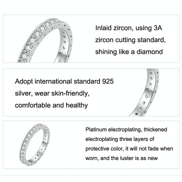 No.8 S925 Sterling Silver Platinum-plated Fine Flash Zircon Single Ring