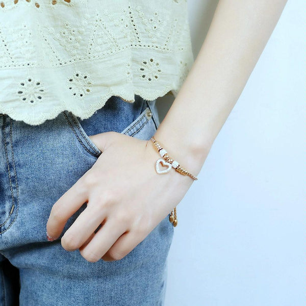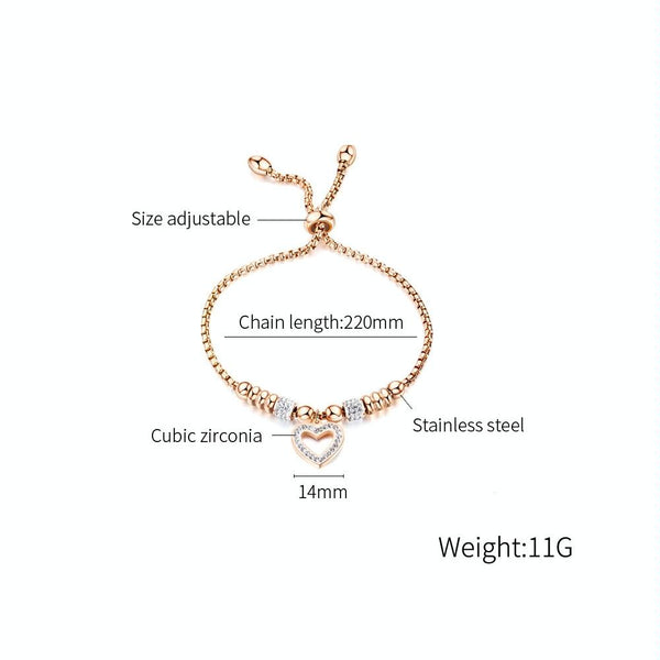 OPK 1022 Titanium Steel Heart Zirconia Bracelet, Color: Rose Gold