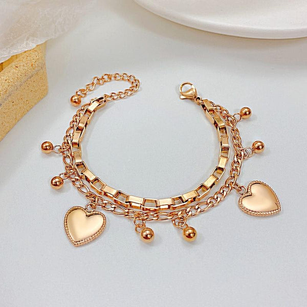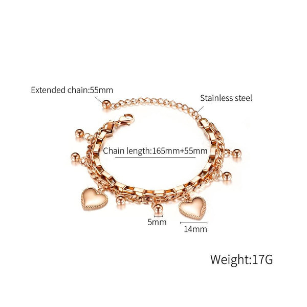 OPK 1038 Multi-layer Stainless Steel Round Bead Love Bracelet, Color: Rose Gold