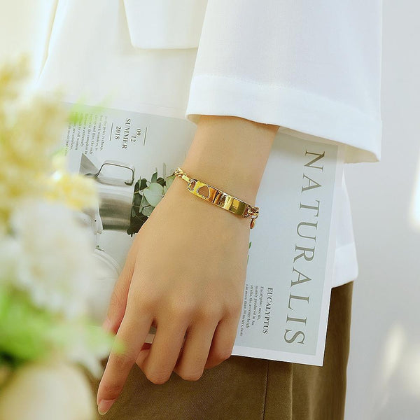 OPK 1151 Stainless Steel Smooth Skeleton Heart Bracelet, Color: Gold