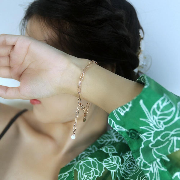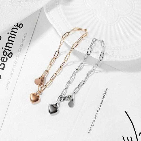 OPK 1161 Cool Style Peach Heart Round Pendant Stainless Steel Bracelet, Color: Gold