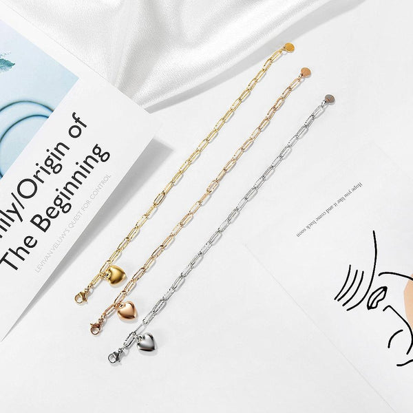 OPK 1161 Cool Style Peach Heart Round Pendant Stainless Steel Bracelet, Color: Steel Color