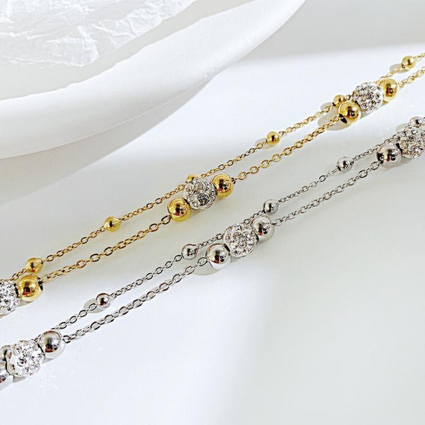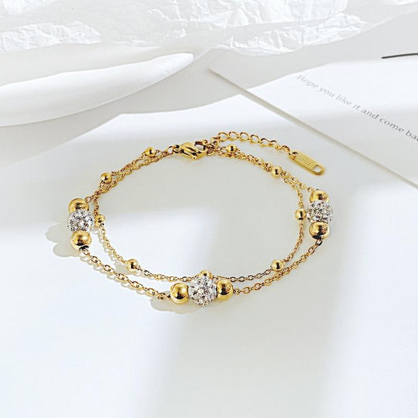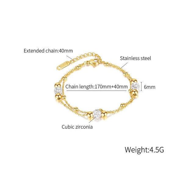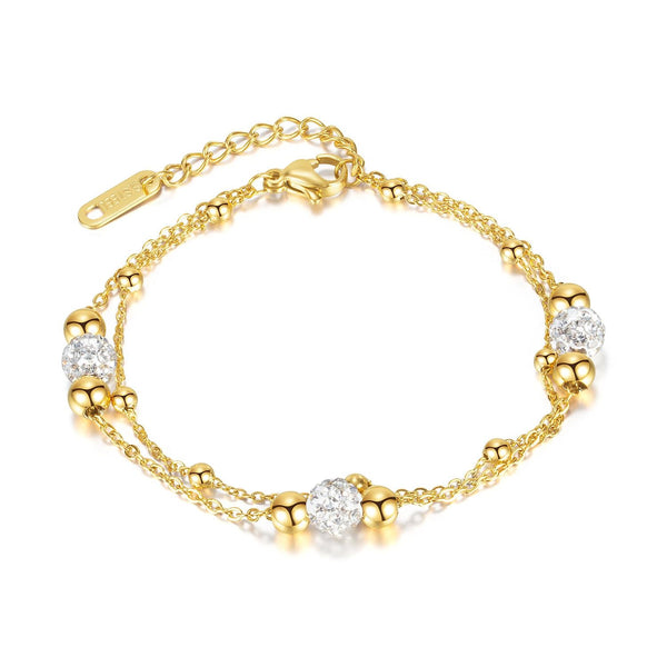 OPK 1249 Double Layer Stacking Simple Round Beads Stainless Steel Bracelet, Color: Gold