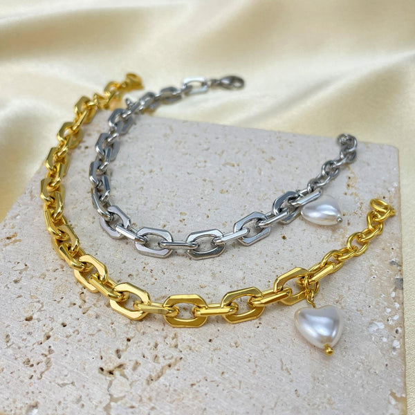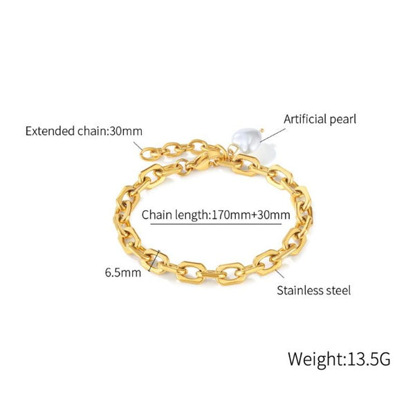 OPK 1323 Stainless Steel Personalized Simple Heart Pearl Bracelet, Color: Gold