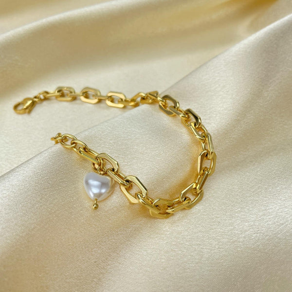 OPK 1323 Stainless Steel Personalized Simple Heart Pearl Bracelet, Color: Steel Color