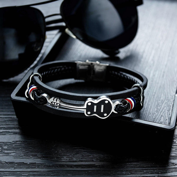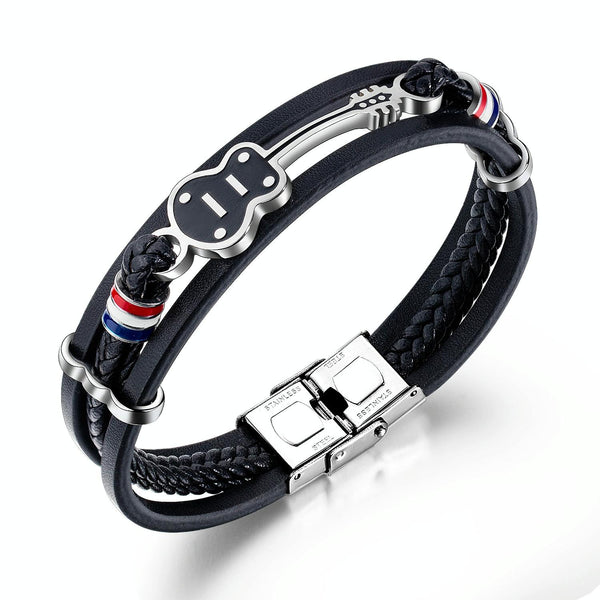 OPK 1354 Titanium Steel Men Leather Hand Ring Personal Multi-Layered Woven Bracelet