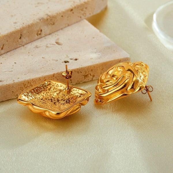 OPK GE904 1pair Stainless Steel Earrings Simple Pleated Square Temperament Earrings