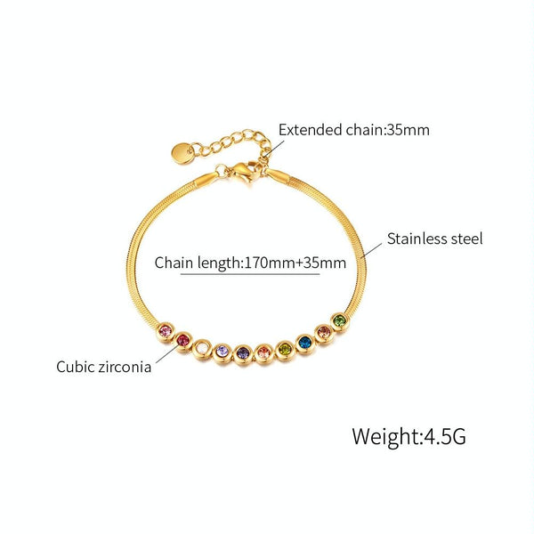 OPK GS1431 Titanium Steel Colorful Zirconia Hand Jewelry Stainless Steel Flat Chain Bracelet, Color: Gold